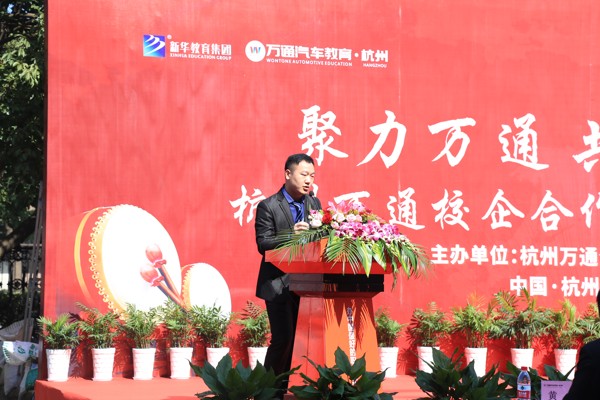 ,裴勇校长代表杭州万通发表重要讲话,他强调,此次无论是对学校的办学,还是对企业的发展都有着重要的意义,希望杭州万通与各大企业之间的合作能够持续、健康、稳定的发展,共同助力于汽车人才的培养。