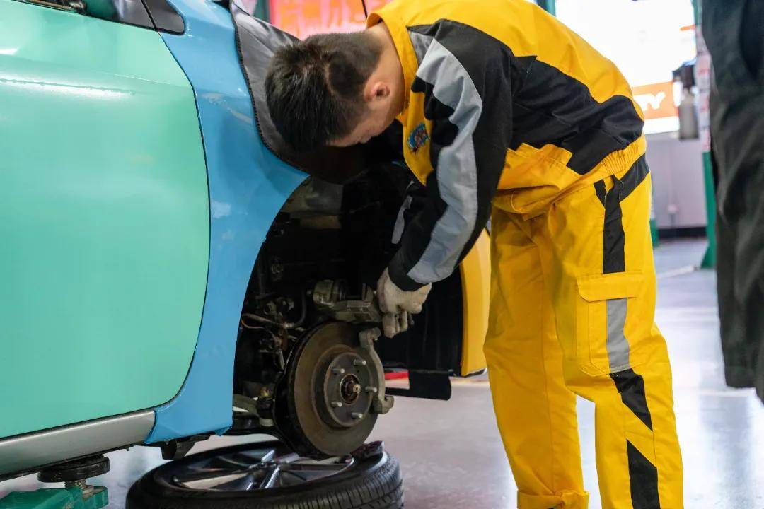 此次考核的内容为在规定时间内进行刹车片拆装这个项目,整个考试环节参照标准化的考试流程进行。按考题要求与考官一对一的进行考核,每个项目都有详细具体的考核标准。考核全过程严格按照安全操作规程操作,考核期间,学生严格按照劳动保护规定穿戴劳保手套等劳动防护用品,确保操作规范。