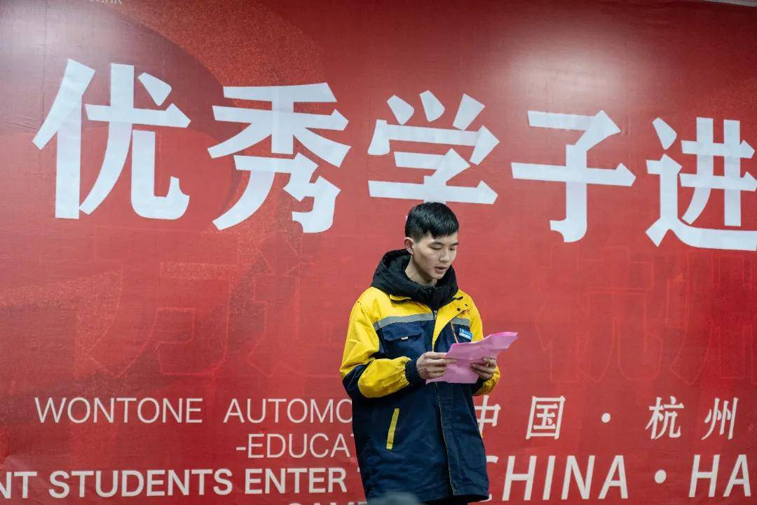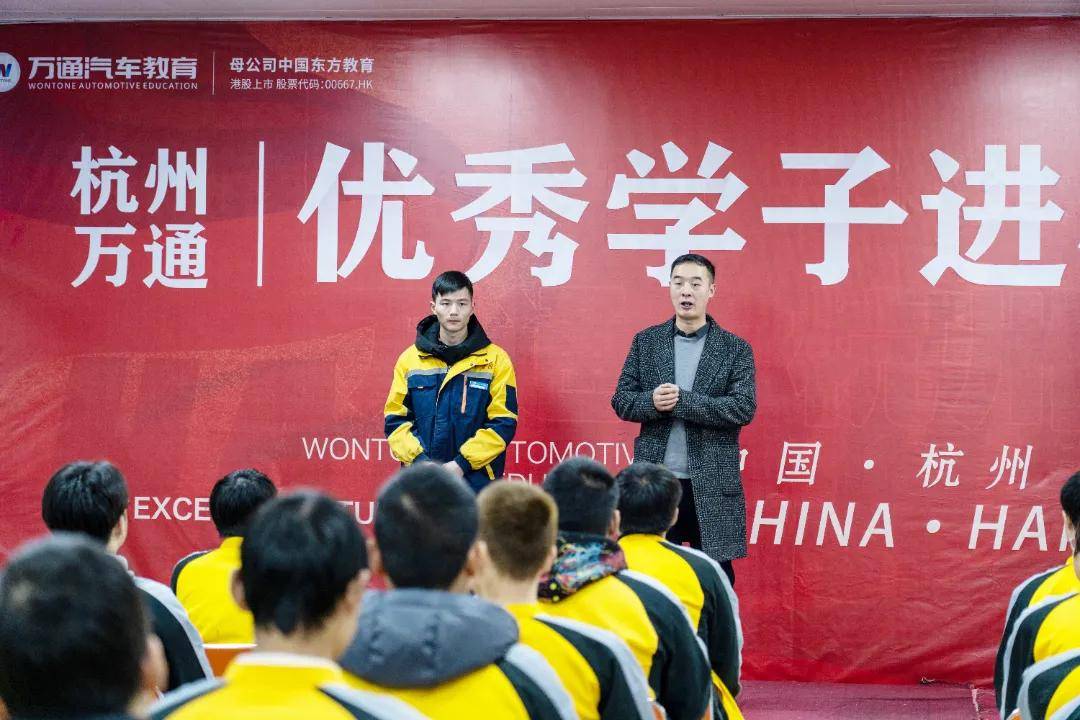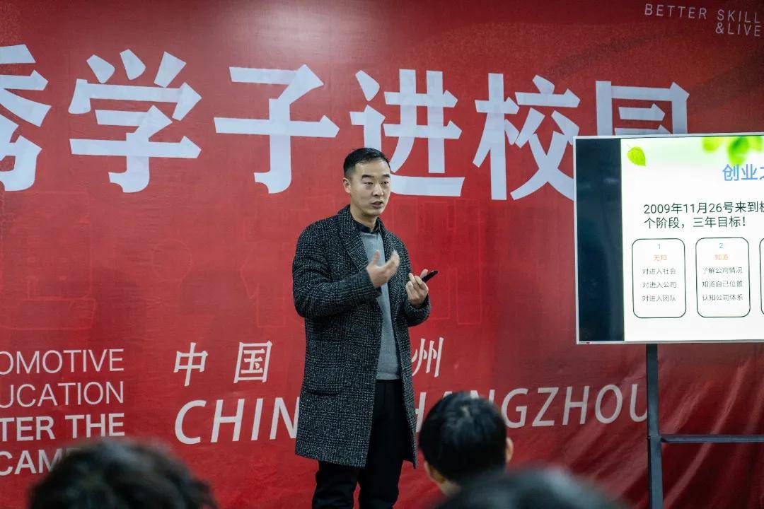 随后,汪海洋学长在自己的分享中流露出了对母校的感激之情,他说:“没有杭州万通的培养,他是不会有今天这样的成绩的。祝愿母校越办越好,能为社会培养出更多的汽修人才。之后又以过来人的身份,希望学弟们一定要珍惜在杭州万通的学习时光,为自己的将来,做好从能力素质到心理状态各方面准备,打好坚实的基础。